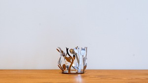 デザインはイタリアの著名デザイナー、Marta Sansoni(マルタ・サンソーニ)によるもの。シート状の金属を繊細なレーザーカット技術でオリーブの枝葉の形に切り出し、丁寧に折り曲げて作られています。